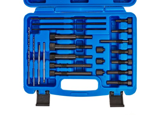 Zestaw służy do wykręcania urwanych żarników świec żarowych poprzez wywiercenie w nich otworu (w zestawie wiertła), nagwintowanie i wkręcenie hartowanej szpilki oraz jednego z dwunastu adapterów. Następnie nakręceniu na szpilkę kolejnego adaptera i kręcenie nim do momentu wyciągnięcia urwanej końcówki świecy żarowej - żarnika