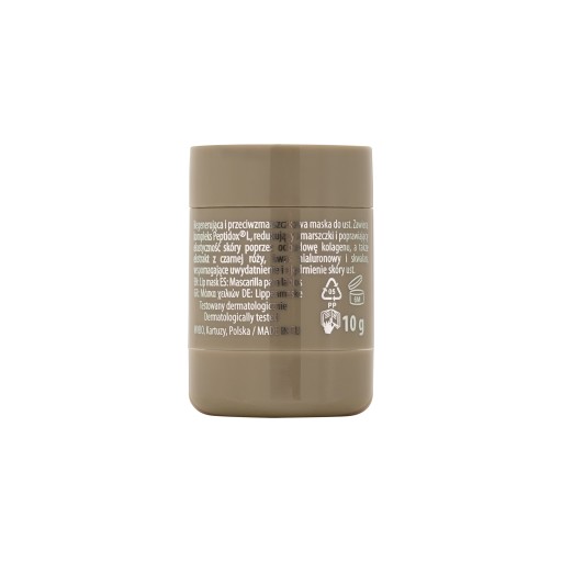 Regenerująca i przeciwzmarszczkowa maska do ust. Zawiera kompleks Peptidox r L, redukujący zmarszczki i poprawiający elastyczność skóry poprzez odbudowę kolagenu, a także ekstrakt z czarnej róży, kwas hialuronowy i skwalan, wspomagające uwydatnienie i ujędrnienie skóry ust.