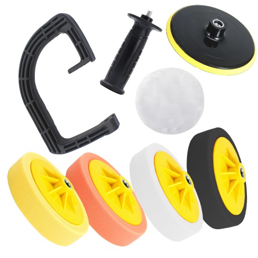 ☝️Polerka samochodowa - w zestawie zawiera cztery gąbki na gwint, które umożliwiają łatwą wymianę i dopasowanie do różnych zadań polerskich.