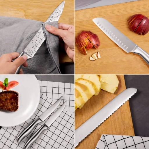 ✔️ Doskonałość w każdym cięciu: Niezależnie od tego, czy gotujesz codziennie, czy od święta, nasze noże zapewnią Ci precyzję, której potrzebujesz na każdym etapie przygotowania.