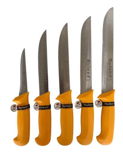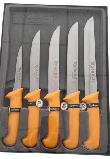 ZESTAW NOŻY RZEŹNICZE KUCHENNE KOMPLET 5 sztuk Roland Germany Żółte uchwyty