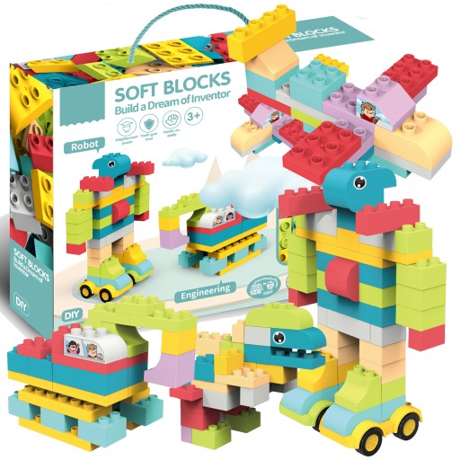 Klocki wykonane z miękkiego tworzywa dzięki czemu są bezpieczne podczas zabawy.