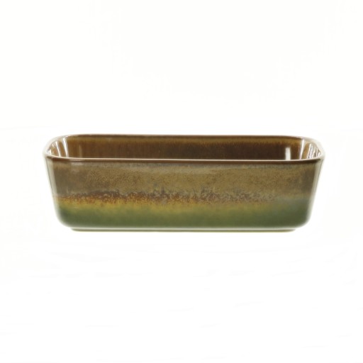 wyjątkowa, ceramiczna forma do pieczenia, która zachwyca nie tylko funkcjonalnością, ale i modnym efektem zdobniczym. Kolorystyka w odcieniach beżu brązu i zieleni wprowadza do kuchni naturalny i ciepły akcent.