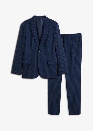 Informacje dodatkowe: Nowoczesny garnitur o dopasowanym kroju z prążkami, składający się z marynarki i spodni