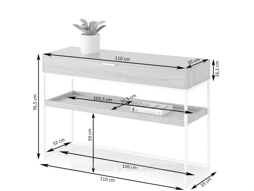 Konsola NORA XL to funkcjonalny i stylowy mebel, który harmonijnie łączy wygląd drewna dębowego z czarnym, minimalistycznym stelażem. Wyposażona w pojemną szufladę oraz praktyczną półkę, doskonale sprawdzi się do przechowywania drobiazgów w salonie, przedpokoju czy sypialni. Jej prosty, a jednocześnie elegancki design nadaje wnętrzom nowoczesny charakter.