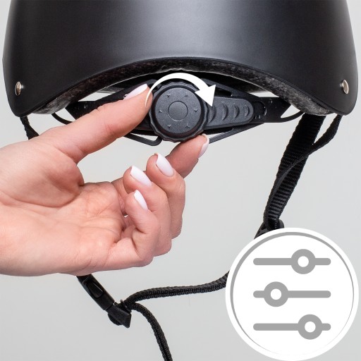 Retencyjny system z pokrętłem umożliwia szybkie i precyzyjne dopasowanie do indywidualnego obwodu głowy.