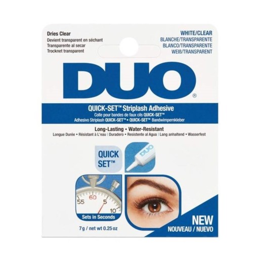Marzysz o zachwycającym efekcie sztucznych rzęs? Zamiast eksperymentować z przypadkowymi produktami, czym prędzej wypróbuj polecany przez wiele klientek bezbarwny Ardell - klej do rzęs DUO Quick-Set Clear. Produkt opakowany w wygodną tubkę charakteryzuje się wodoodporną formułą zapobiegającą odklejaniu się rzęs oraz lekką, lateksową konsystencją - dzięki czemu nigdy nie powoduje na powiece uczucia ciężkości. Zdaniem wizażystów klej do rzęs Ardell DUO Quick-Set Clear to recepta na piękny i naturalny wygląd twoich oczu przez cały dzień. Warto wiedzieć, że ten klej do rzęs DUO po nałożeniu staje się przezroczysty, zaś w noszeniu staje się całkiem niewyczuwalny.