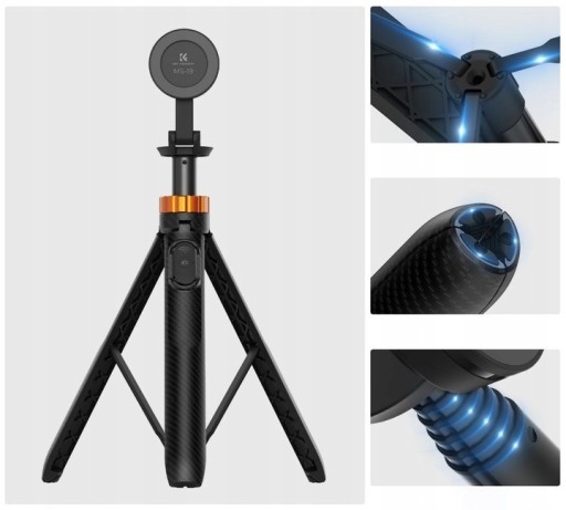 - Funkcja kijka selfie / monopodu o płynnie regulowanej długości do 162 cm