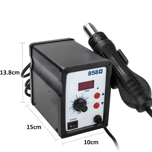 Dzięki precyzyjnej regulacji temperatury i przepływu powietrza, stacja lutownicza na gorące powietrze 858D zapewnia pełną kontrolę nad procesem lutowania, umożliwiając efektywne i dokładne wykonanie każdego zadania.