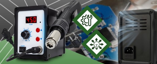 Dzięki regulowanej temperaturze i dużej wydajności powietrza, jest idealna do lutowania elementów elektronicznych, usuwania farb i klejów, a także do naprawy zniszczonych części samochodowych.