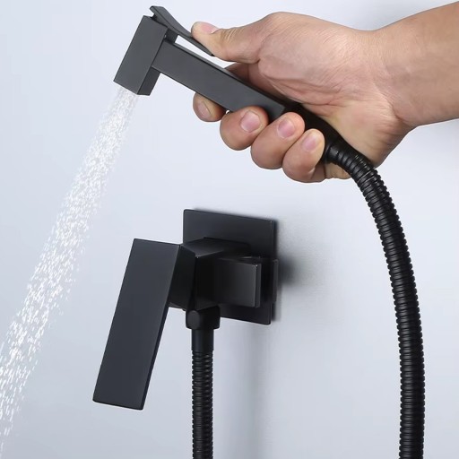 BATERIA BIDETOWA ŚCIENNA PODTYNKOWA DO BIDETU WĄŻ SŁUCHAWKA CZARNA CUBIC