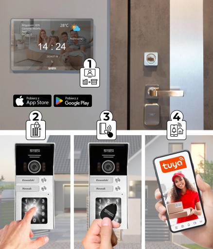 Dzięki aplikacji Tuya zainstalowanej w telefonie, użytkownik może otwierać drzwi zdalnie przez telefon, bez konieczności fizycznej obecności przy wejściu.