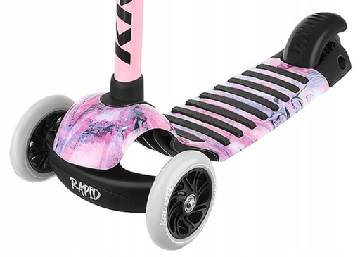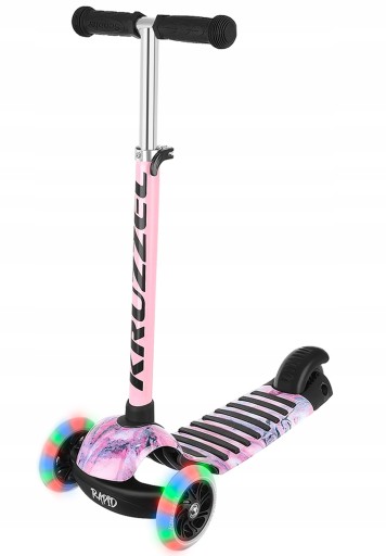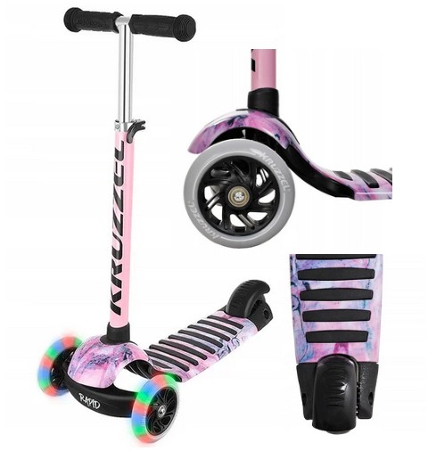 Jej niezwykły design i kolorystyka zachęca dzieci do aktywności na świeżym powietrzu a wytrzymałe poliuretanowe kółka z wysokiej jakości łożyskami ABEC-5 sprawiają, że jazda na hulajnodze KRUZZEL jest wyjątkowo płynna i bezpieczna. Świetnie nadaje się na spacery z rodzicami czy zabawy z rówieśnikami.