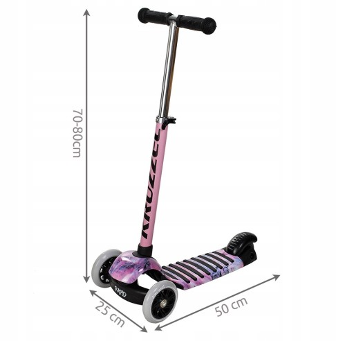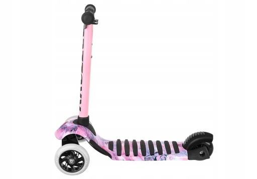 Hulajnoga stworzona została dla dzieci od 3 roku życia. Poruszanie się na niej jest wyjątkowo płynne oraz bezpieczne, a nauka jazdy jest niezwykle prosta. Jej lekka i solidna konstrukcja utrzyma udźwig aż do 60 kg! Unikalny mechanizm sterowania polega na balansowaniu ciałem. Hulajnoga posiada 3-stopniową regulację wysokości drążka kierowniczego, ponadto jest on wyjmowany co zdecydowanie ułatwia transport i przechowywanie pojazdu. Bez problemu zmieści się w samochodzie i nie zajmie dużo miejsca w mieszkaniu, garażu a nawet szafie.
