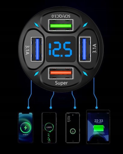 Idealny dla rodziny w podróży, która wymaga wielu ładowarek do telefonu komórkowego, MP3, GPS, aparatu itp.