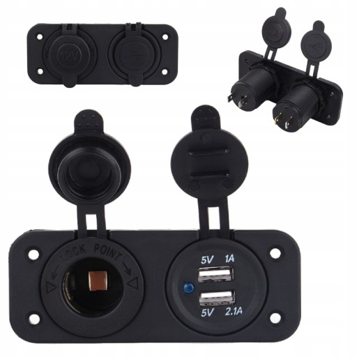 Rozdzielacz gniazda zapalniczki samochodowej 12 V Podwójna ładowarka USB 2.0A/1A