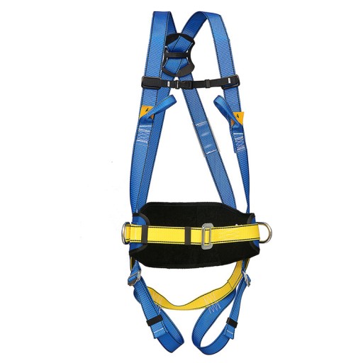 - SZELKI BEZPIECZEŃSTWA P-05S - wyposażone w tylną klamrę zaczepową oraz przedni punkt zaczepowy, regulowane pasy udowe i pas piersiowy. Szelki posiadają pas do pracy “w podparciu” z bocznymi klamrami zaczepowymi. Taśmy wykonane są z poliamidu/poliestru 45 mm, szyte nićmi poliestrowymi. Klamry stalowe - ocynkowane;