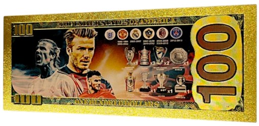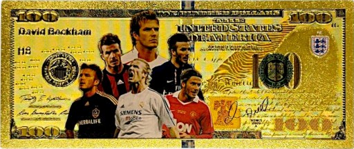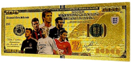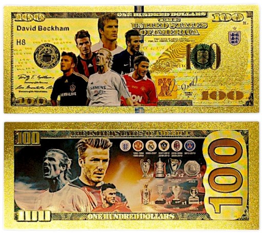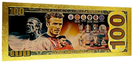 DAVID BECKHAM PIĘKNY POZŁACANY BANKNOT KOLEKCJONERSKI z PCV