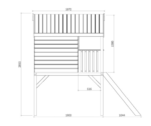 - Przekrój słupka (nogi) domku: 70 x 70 mm