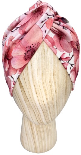 Czapka Turban Cienki Jersey Bawełna Kwiaty Pink Blush dla kobiet po chemii