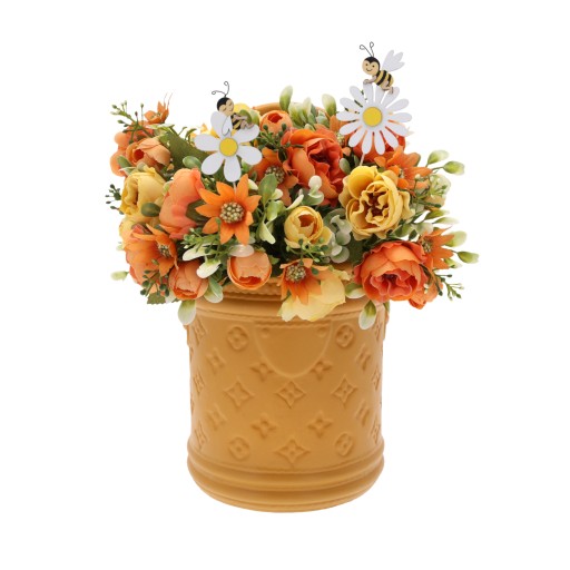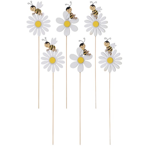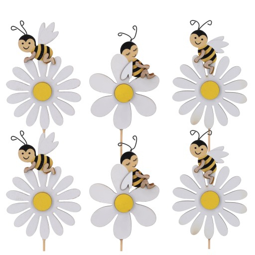 Drewniane kwiatki ozdobione pszczółką - świetnie podkreślą Twoje stroiki, bukiety i rośliny doniczkowe.