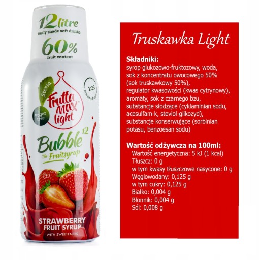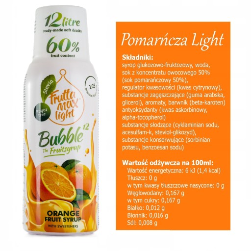 Pojemność syropu: 500 ml (wystarczy na przygotowanie około 12 litrów Twojego ulubionego napoju)