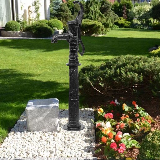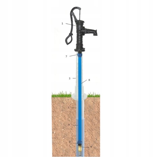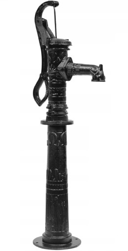 - Pompując wodę za sprawą rączki i przymocowanej do niej dźwigni wprawiamy tłok w ruch, który zasysa wodę ze studni. Specjalny zawór bagnetowy, blokuje powrót wypompowanej wody z powrotem do studni.