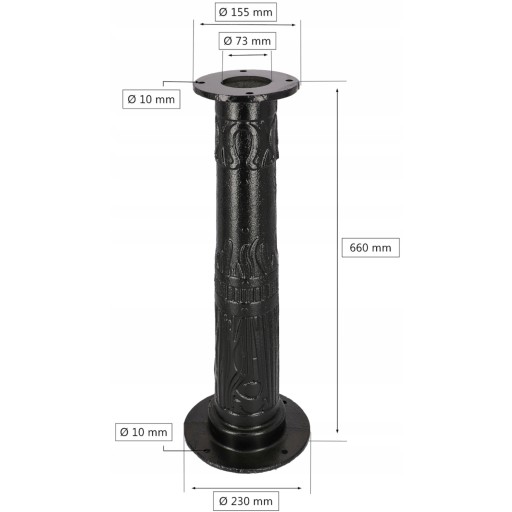 Jest to okrągły, żeliwny postument, którego dolna część posiada cztery otwory, poprzez które mocuje się go do podłoża oraz część górną, której cztery otwory mają właściwy rozstaw dla przykręcenia pompy abisynki.