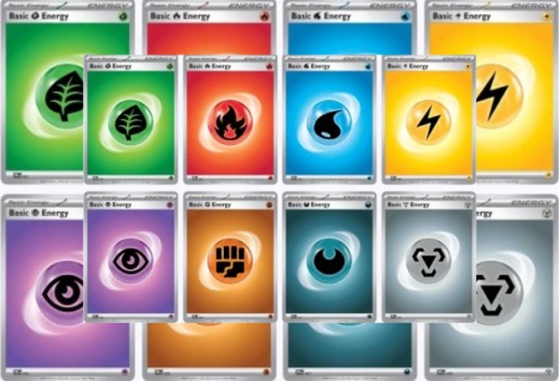 💡 W grze wyróżniamy 8 podstawowych typów energii, które odpowiadają typom Pokémonów: