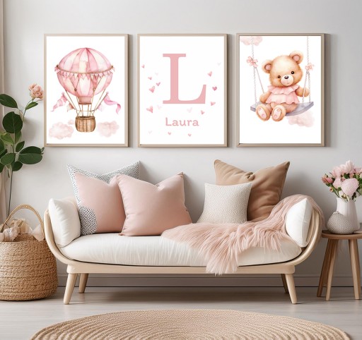 Trzy plakaty w personalizowanym zestawie to idealna dekoracja, która doda uroku pokoju dziecięcemu. Dzięki nim wnętrze nabierze wyjątkowego charakteru i stanie się jeszcze bardziej przytulne.