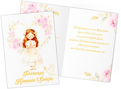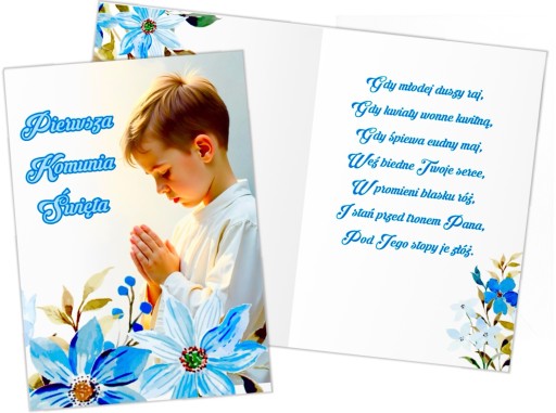 PIERWSZA KOMUNIA ŚWIĘTA życzenia na komunię PAMIĄTKA komunijna KARTKA DUŻA