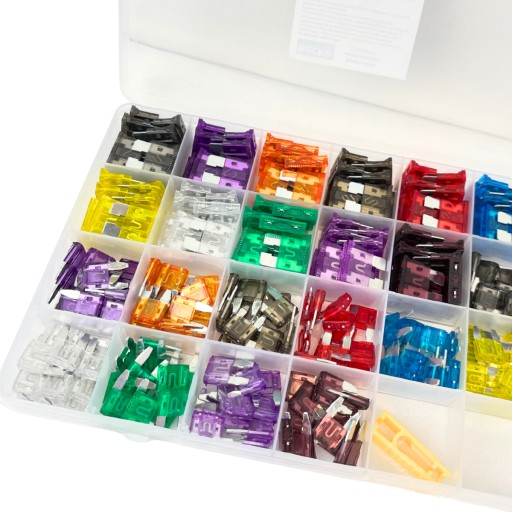 Wszystkie bezpieczniki są posegregowane i przechowywane w praktycznym organizerze, który zajmuje niewiele miejsca. Możesz trzymać go w schowku samochodowym, skrzynce narzędziowej lub warsztacie – zawsze pod ręką, kiedy go potrzebujesz!