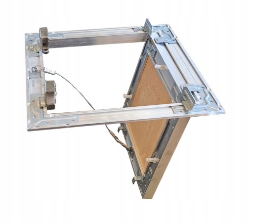 Ramka z płytą mocowana jest na specjalnych "wąsach" dzięki czemu, mimo, że konstrukcja nie ma stałych zawiasów, po otwarciu rewizji, płyta nie wypadnie ze skrzydła. Aby wyjąć ramkę z płytą, należy obrócić skrzydło pod kątem 45 stopni i wysunąć.