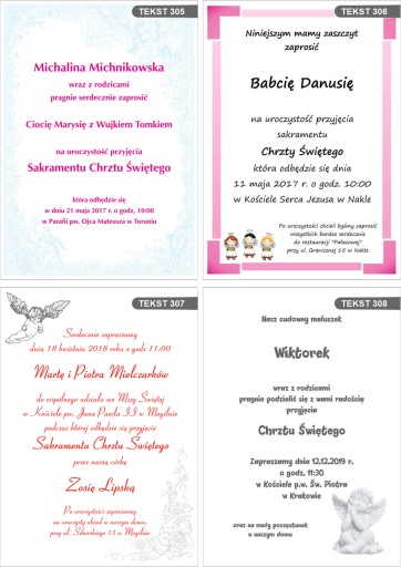 - ze względów technicznych minimalna ilość zaproszeń w zamówieniu to 8 szt.