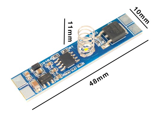 ✅⚒️ Krótkie dotknięcie włącza/wyłącza taśmę. Poprzez dłuższe przytrzymanie palca, sterownik ściemnia lub rozjaśnia taśmę led. Wbudowana mała dioda umiejscowiona wewnątrz sprężyny informuje o załączeniu zasilania zaświecając się na niebiesko.