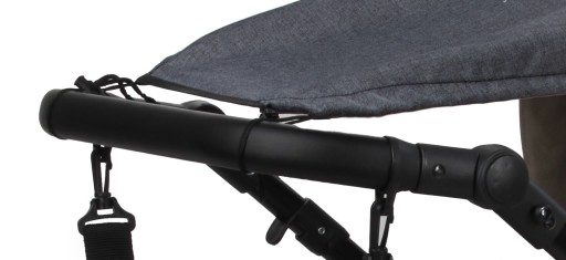 - Prosty montaż- za pomocą gumki nakładanej na budkę wózka i sznureczków wyposażonych w stopery, które mocuje się na rączce.