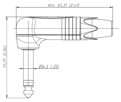 NP2RX złącze jack mono kątowe niklowane (TS) 6,3 mm-1/4' Neutrik