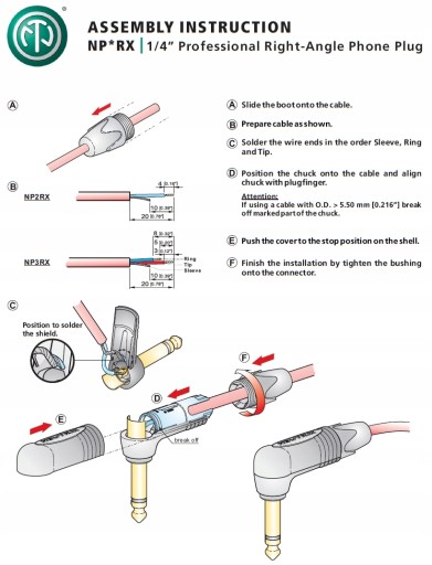 - Zastosowanie: podłączanie instrumentów do wzmacniacza (gitara, bas, mandolina itp.), łączenie urządzeń audio, podłączenie mikrofonów (niesymetryczne)