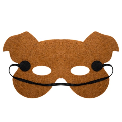 Oferujemy Państwu maskę filcową w kształcie pieska, idealną dla miłośników zwierząt oraz uczestników różnych przedstawień i zabaw. Ta urokliwa maska w kolorze brązowym została wykonana z wysokiej jakości, miłego w dotyku filcu, co zapewnia komfort noszenia. Dzięki starannym wycięciom na oczy oraz lekko zaznaczonemu kształtowi pyszczka, użytkownik zyskuje swobodę widzenia oraz możliwość łatwego oddychania.