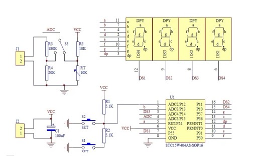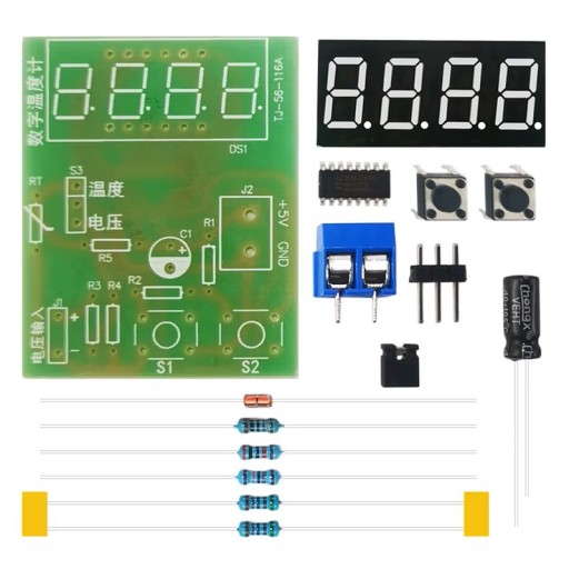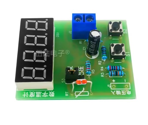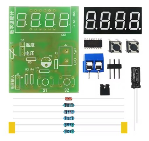 Ten termometr wykorzystuje termistor MF58 do uzyskania wartości temperatury, moduł oparty na układzie serii MCU STC15, wykorzystuje MCU do pomiaru szeregowej wartości termistora oblicza odpowiednią temperaturę stopnia Celsjusza, aby wyświetlić ją na 4-cyfrowym wyświetlaczu. Pomiary temperatury waha się od -40°C do +120°C.