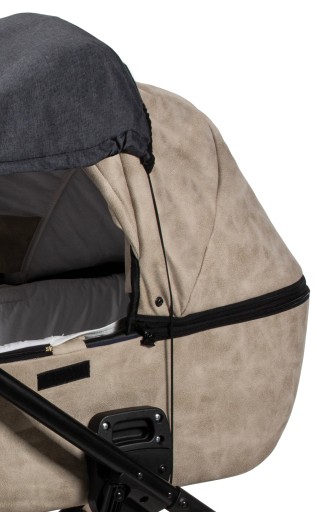 - Prosty montaż- za pomocą gumki nakładanej na budkę wózka i sznureczków wyposażonych w stopery, które mocuje się na rączce.