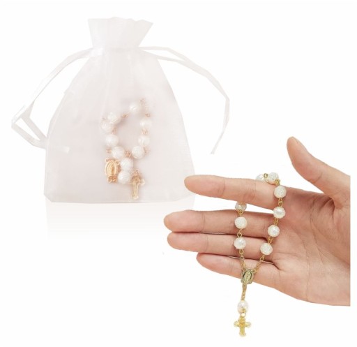 Różaniec z woreczkiem z organzy, to piękne podziękowanie dla najbliższych za udział w uroczystości I Komunii Świętej.