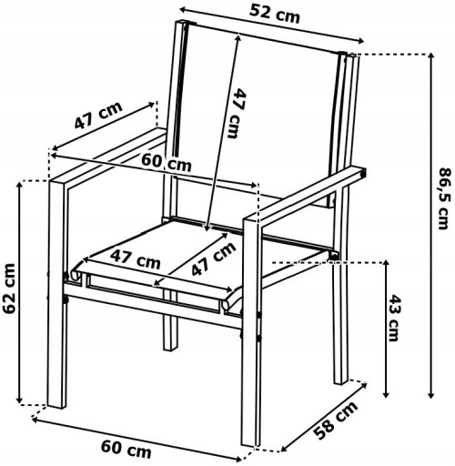- materiał oparć i siedzisk: tworzywo sztuczne textilene