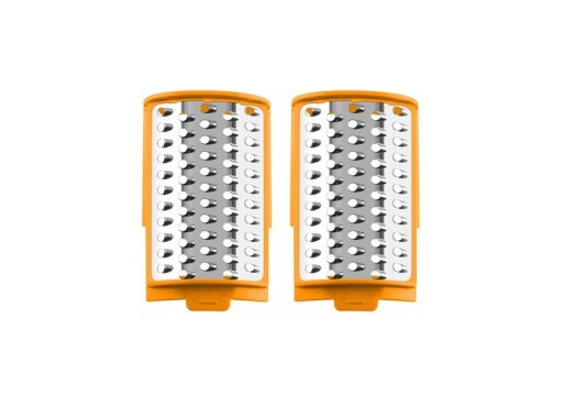 Wymienne tarki w tarce ETA Gratta są jak klocki LEGO do gotowania! Można je łączyć , aby uzyskać dokładnie taką konsystencję, jakiej potrzebujesz. Czy potrzebujesz ziemniaków do placków ziemniaczanych? Aby uzyskać najlepszy smak, połącz drobną i grubą tarkę . A to nie wszystko! Dzięki naszym przystawkom z łatwością poradzisz sobie z każdymi warzywami, owocami, serami i czekoladą .