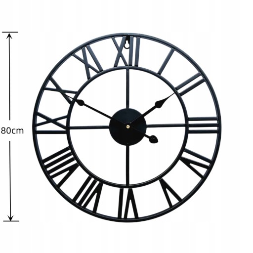 DUŻY METALOWY ZEGAR ŚCIENNY 80 CM CZARNY
