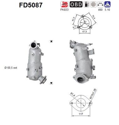 AHG AHG11060, ASSO 54.15002, BM CATALYSTS BM11060H, BOSAL 095-319, BOSAL 097-319, EuroFlo EPTY7001TA, FA1 CC770354, FENNO P9950DPF, HELLA 8LG 366 071-421, Henkel Parts 6110000, Henkel Parts 6115255R, Henkel Parts 6115255S, IMASAF 69.89.93, NOVAK 41.160.F, NOVAK 41.160.FSiC, NPS T435A02, TOYOTA 2505126020