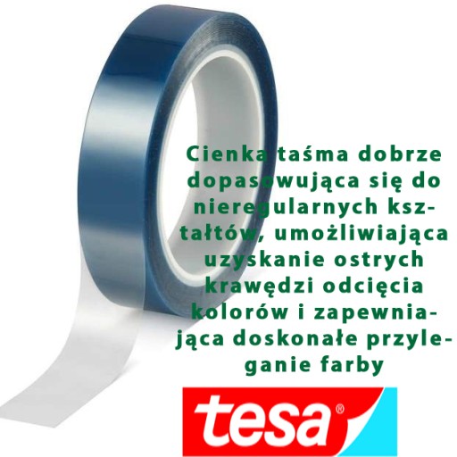 ✅ Cienka taśma dobrze dopasowująca się do nieregularnych kształtów, umożliwiająca uzyskanie ostrych krawędzi odcięcia kolorów i zapewniająca doskonałe przyleganie farby