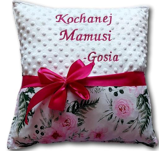 Polecam podusie z haftowanym tekstem.