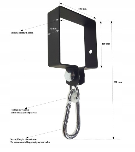 Obejma do mocowania huśtawki kwadratowa z karabińczykiem 100x100 mm czarna 2 sztuki zestaw