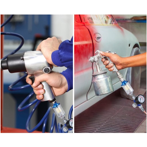 ✅Regulator powietrza i manometr nadają się do pistoletów natryskowych i narzędzi pneumatycznych. Idealne narzędzie do renowacji samochodów, żeglarstwa, budownictwa, obróbki drewna / produkcji mebli i wszelkich prac przemysłowych.